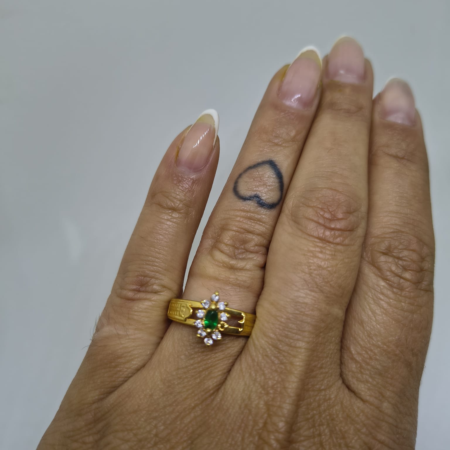 Anel de Formatura Esmeralda sintética com 10 zircônias – Pedra Lateral – 5x3mm – Aproximadamente 4,5g