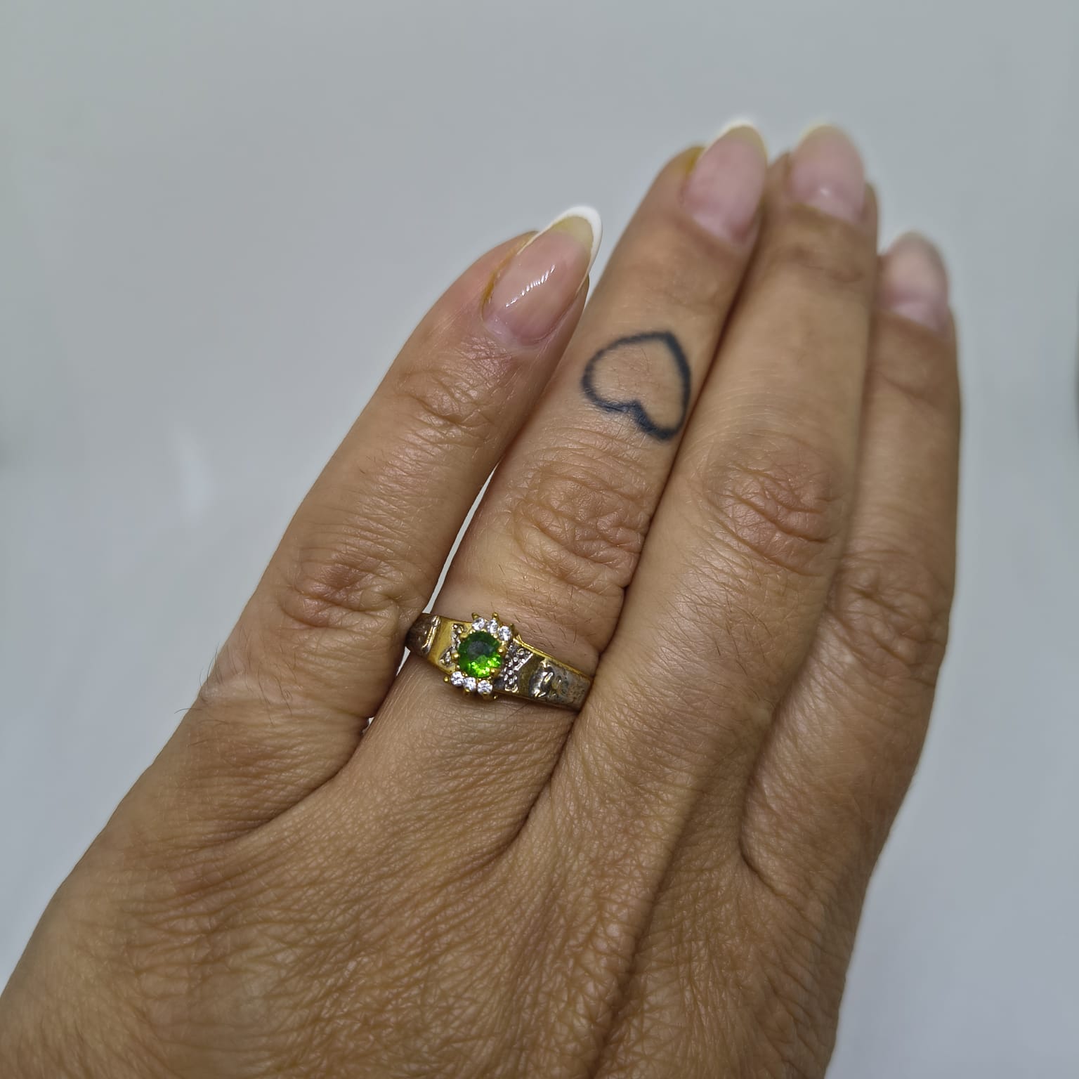 Anel de Formatura Esmeralda sintética redonda 4mm – com 6 zircônias Branca – Pedra Lateral – Aproximadamente 2,8g